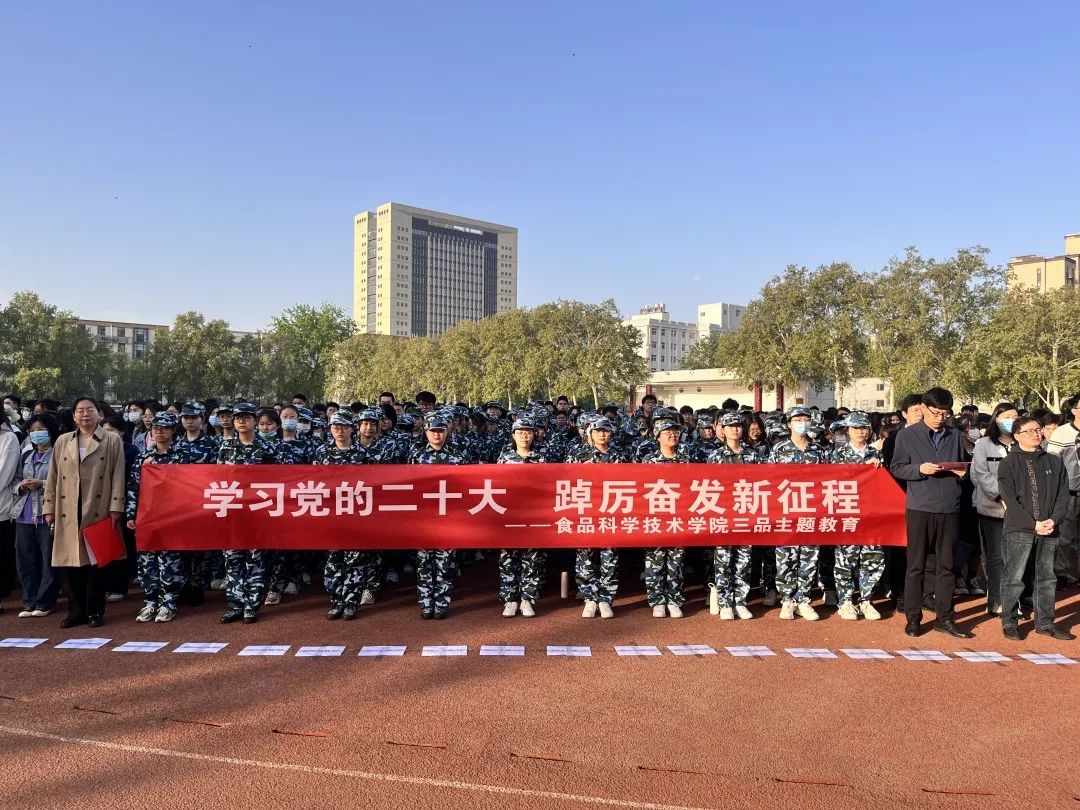 22级食品一班退伍学生代表李渊进行发言,他分享了两年服役的个人成长经历,并表示,大学生应征入伍,是响应党和国家的号召,是保证国家安全的需要,希望同学们能够不负青春好时光,不断奋斗,向着梦想前进。