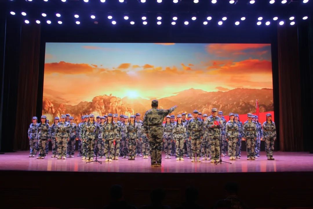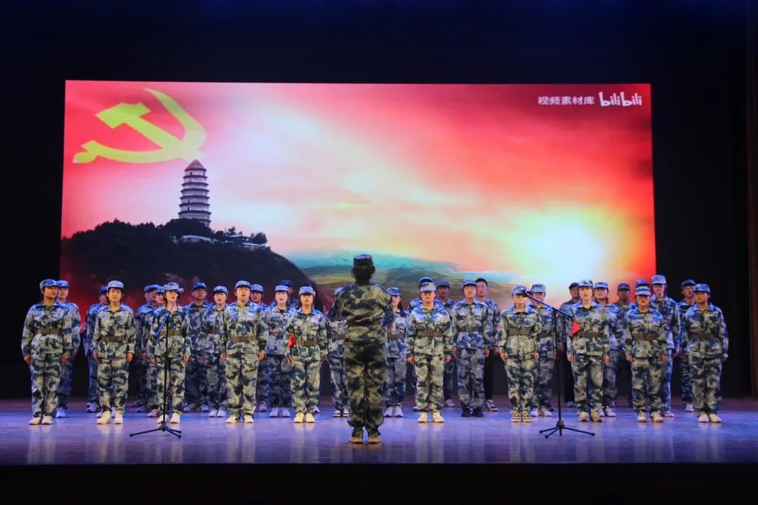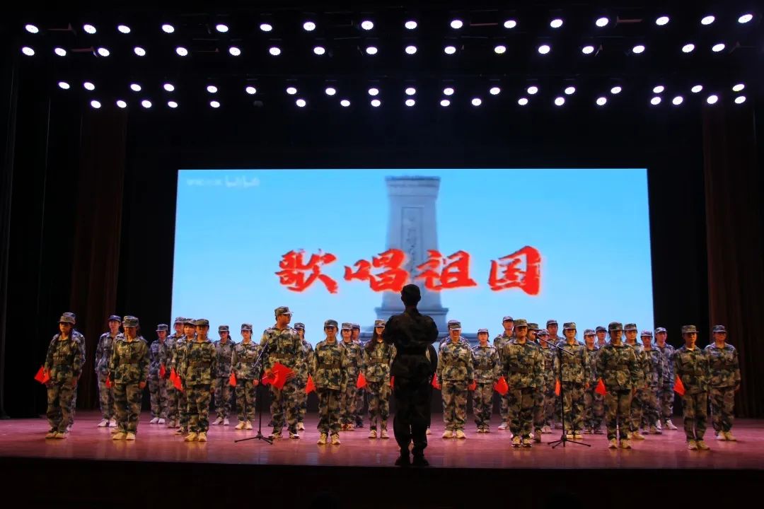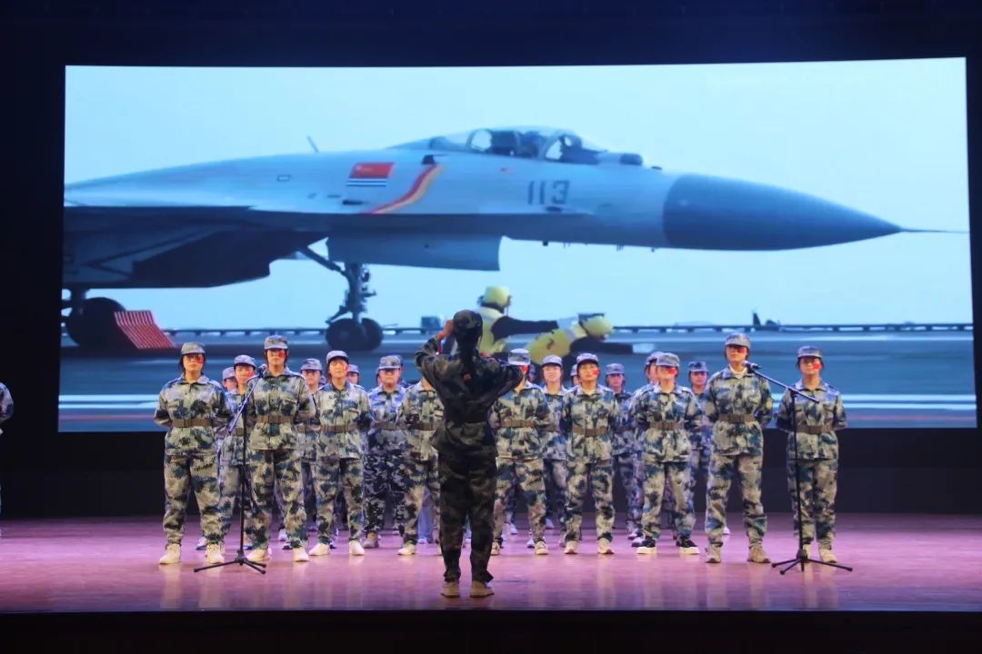 二排带来了大合唱《我和我的祖国》,同学们神采奕奕,歌声铿锵有力,唱出了他们对祖国深沉的爱。三排和四排分别带来了大合唱《强军战歌》,他们嘹亮的歌声、坚定的神情诠释着真实的军营生活,将革命时期豪壮、英勇的情怀展现得淋漓尽致。同学们手中摇曳的五星红旗仿佛是天空中最璀璨的星星,将现场的观众完全带入了华夏儿女魂牵梦萦的革命历史记忆中。五排出镜合唱视频《强军战歌》,“不惧强敌敢较量,为祖国决胜疆场”,热血饱满的同学们唱出了雄浑,唱出了山河,也唱出了胸腔中澎湃的报国之志。