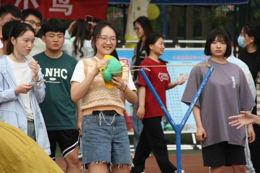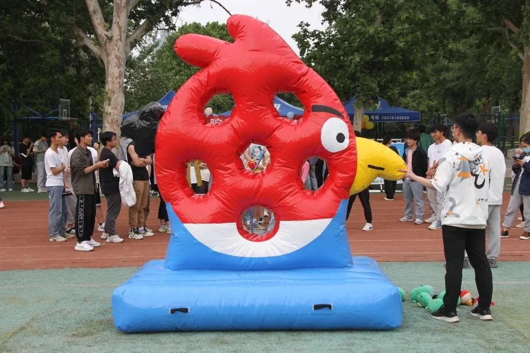 “愤怒的小鸟”作为一项单人游戏,参赛者需要使用弹弓将小鸟射过一个个小型洞口,同学们对此兴趣十足,争前恐后的报名参加,现场欢笑声此起彼伏。