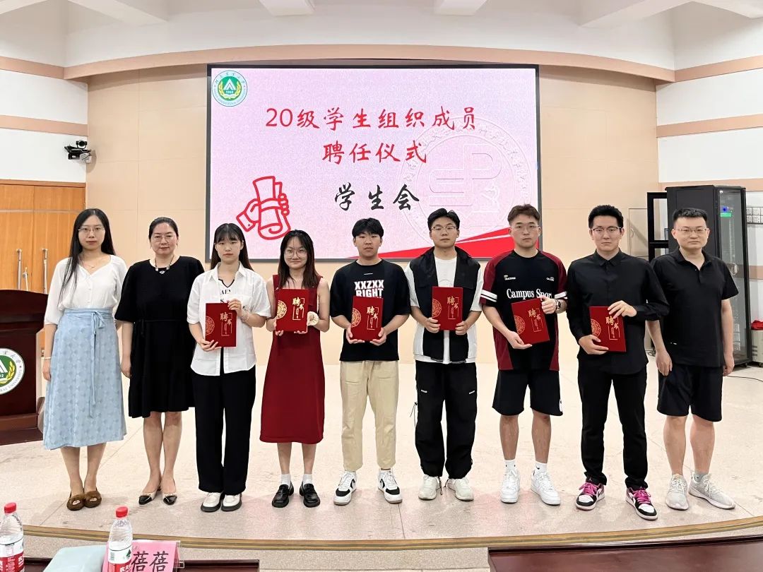 老师们为各学生组织20级成员颁发聘书,对他们过去一年的工作表示肯定,并进行合影留念。