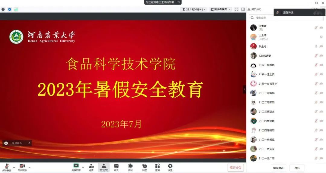 各年级辅导员结合往年案例和生活实际,强调了宿舍安全、交通安全、食品安全、网络安全等七类安全问题。对同学们的离校安全做出强调,要注意宿舍断电关窗,保护好自己的财产安全;叮嘱同学们遵守交通规则,牢记“三不”;少吃辛辣生冷的食物,注重食品安全。同时,提醒同学们切实提高安全防范意识和警惕性,谨防电信诈骗、网络传销,涉嫌违法犯罪的暑假兼职。会议结束后,辅导员告诫同学们要将“安全”两个字牢记于心中,由各班自行组织本班暑假安全教育班会,将注意事项传达给每位同学,并希望同学们度过一个有趣且充实的暑期生活。