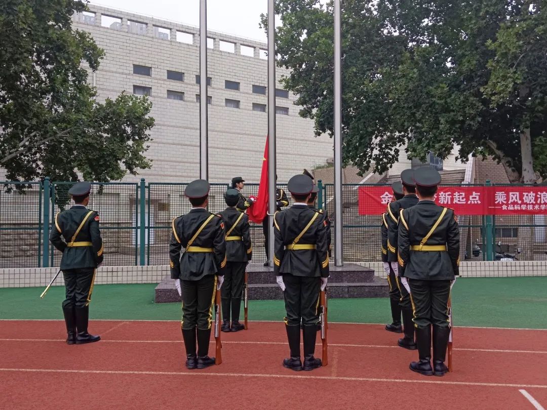升旗仪式早上七点,国旗护卫队迈着整齐的步伐,护送着鲜艳的五星红旗,向着旗台庄严进场,五星红旗伴随《义勇军进行曲》的响起冉冉升起,全院师生行注目礼。
