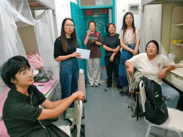 新生到校情况,帮助新生更快适应校园生活,9月15日下午,院长黄现青、院党委副书记李蓓蓓、副院长张剑、谢新华、院团委书记路平、学院办公室主任徐丽娜、院党委组织员陈翔和23级全体班主任共同走访本科新生和研究生宿舍,为23级新生送上温暖与祝福。