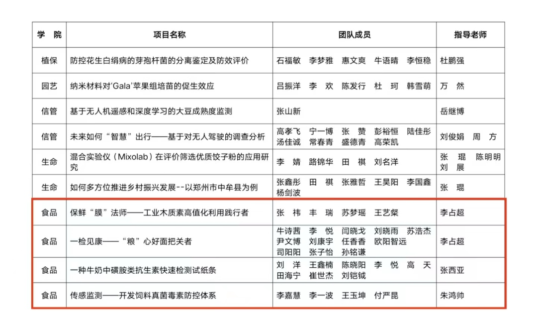 参赛作品《微光快检——开创普适化食品快检新时代》荣获二等奖;《保鲜“膜”法师——工业木质素高值化利用践行者》、《一检健康——“粮”心好面把关者》、《一种牛奶中磺胺类抗生素快速检测试纸条》、《传感检测——开发饲料真菌霉素防控体系》四项作品荣获三等奖。