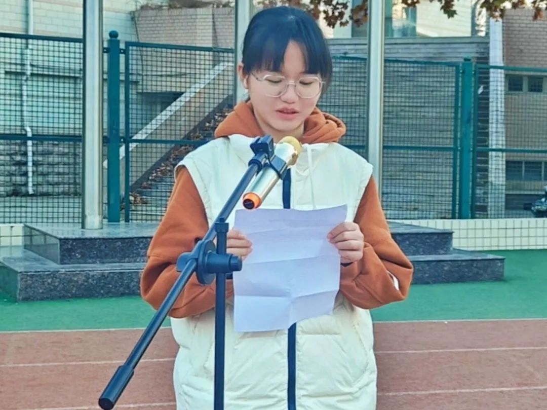 国家奖学金获得者韩明格作为学生代表发言,她表示,作为青年要依法而言、依法而行,时刻与宪法同在,并激励同学们在大学时光里充实自己,不断提高自身素质。