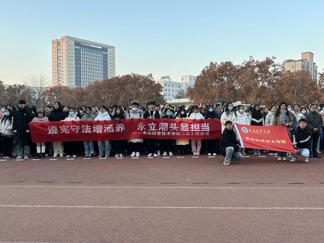 院党委书记赵改名指出遵守宪法是我们每个公民的基本义务。近年来,公民守法用法意识逐渐提高,国家对青年的使命和担当也有了更高的寄托。他对同学们提出以下几点希望:一是遵宪守法,铸就和谐社会;二是涵养品德,弘扬法治精神;三是担当责任,彰显时代风采;四是勇立潮头,践行守法精神。他表示,大家要共同努力,遵守宪法,学习宣传食品安全相关法律法规,担负起这个时代赋予青年的责任。