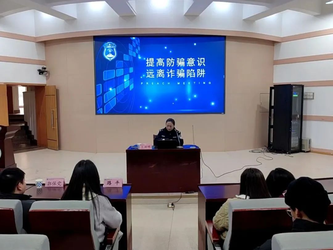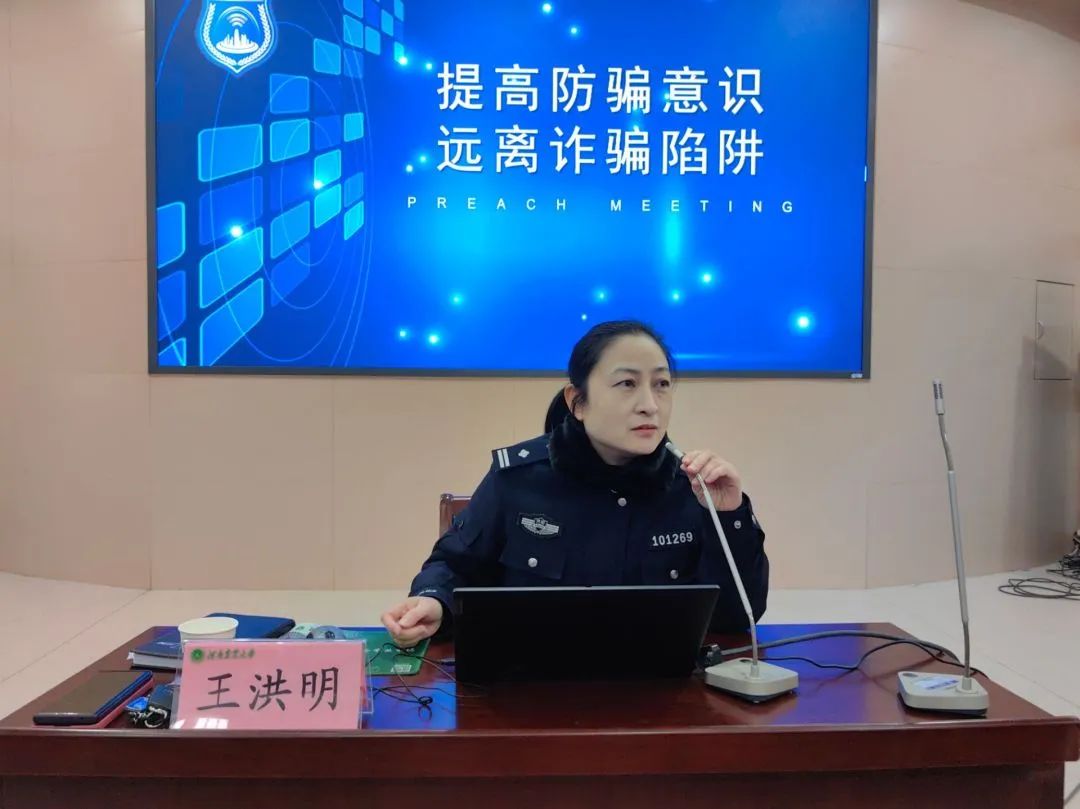 会议伊始,王洪明向同学们介绍了安全防范的各个方面。她指出,在大学校园里,学生们面临着各种安全风险,并强调,安全意识具有很重要的意义。她表示,要时刻保持警惕,不轻信陌生人,注意个人财物安全。在会议期间,她为大家讲解了自我防护的方法及诈骗分子的常用手段,她用幽默风趣的语言、真实生动的案例为同学们讲述被诈骗的真实案例,会场气氛活跃,同学们热情高涨。最后,她希望大家在校园内能做到时刻保持警惕,同时关注周围同学的安全;在网上,也要注意保护个人隐私,不轻易泄露个人信息,防止上当受骗。