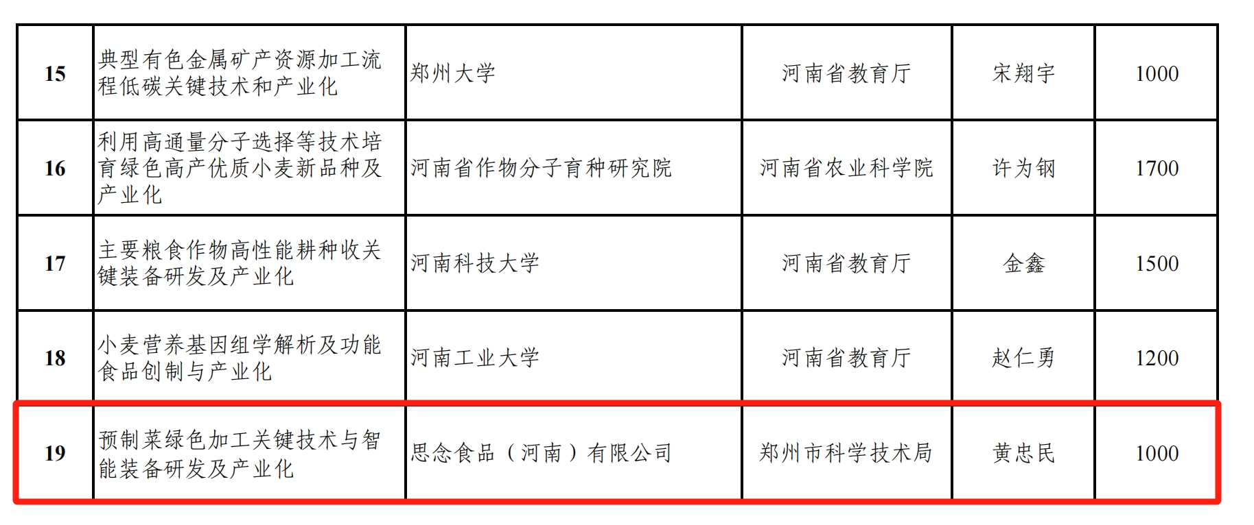 根据《河南省2023年第二批科技发展计划下达通知》(豫科[2023]135号),哔咔漫画二级教授、教授级高工黄忠民主持的河南省重大科技专项“预制菜绿色加工关键技术与智能装备研发及产业化”获批立项(项目编号:231100110400)。项目财政经费1000万元,研究期限3年,参加单位包括思念食品(河南)有限公司、千味央厨、九豫全等预制菜产业头部企业,以及郑州轻工业大学、北京工商大学、中原食品实验室等十余家科研单位。