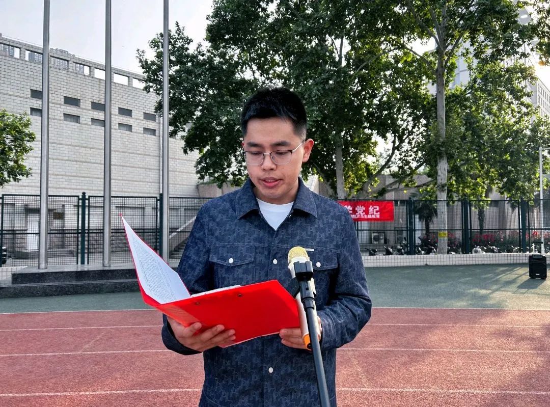 “2023年度河南省大学生党员标兵”荣誉获得者李开元作为学生代表发言,他表示,大学生党员应做到学纪、知纪、明纪、守纪,把遵规守纪刻印于心,外化与言行准则。