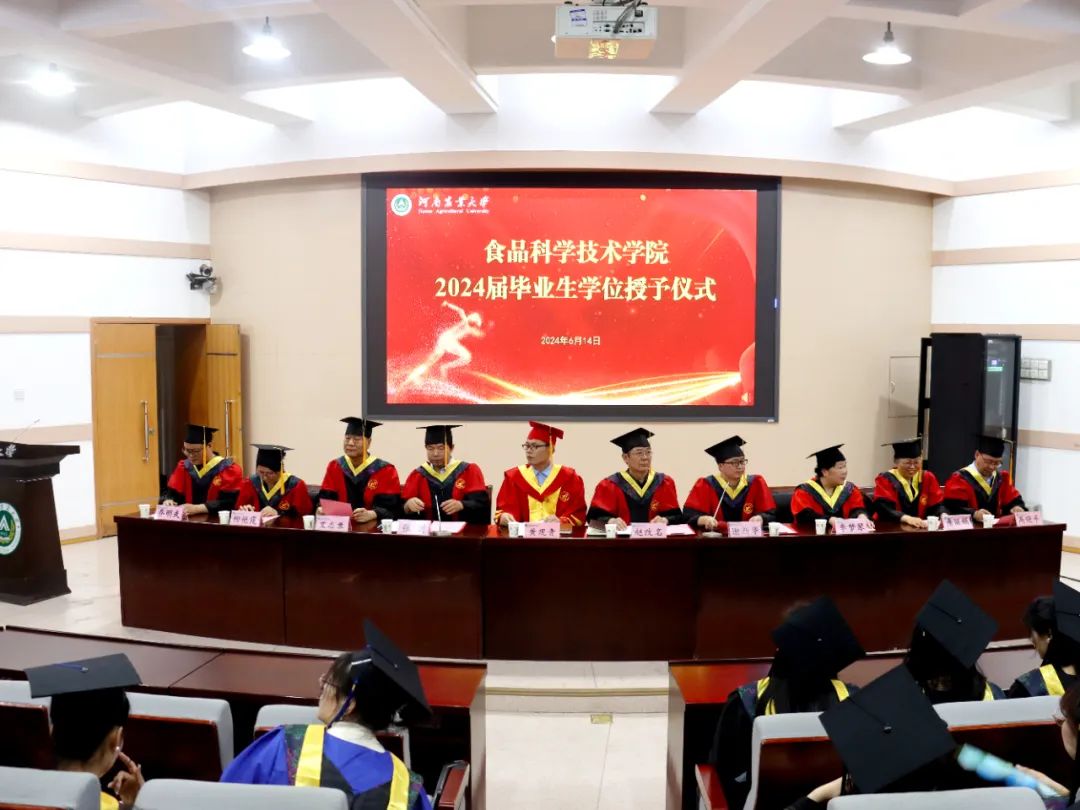 院学位委员会委员依次为2024届毕业生授予学位,扶正流苏,寄语祝贺并合影留念。