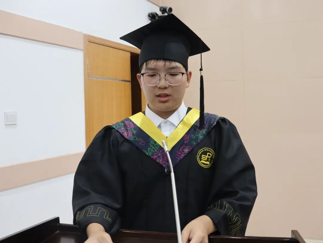 研究生毕业生代表李子哲对过去的本科及毕业生生涯表示无限感慨,一次次的择洒汗水、播种梦想,不使他获得不断的突破与进步,更学会了面对挫折的勇气及成长的智慧。