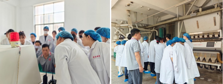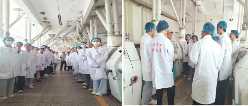 长张剑深入企业了解学生们的实习情况;张院长从实习进度、食宿生活、心理状态等方面与学生们进行交流,听取学生意见。张院长指出生产实习是食品科学与工程专业不可或缺的一个关键环节,通过让大家深入企业了解现代化加工设备及生产工艺流程,可以帮助大家巩固和深化所学专业理论知识,为下一学年的食品工厂设计与环境保护课程设计和毕业设计奠定良好的基础。张院长对金苑实习生们的实习进度和踏实肯干、虚心请教的学习状态进行了肯定,并对学生们提出了更高的要求,要求学生高度注意安全,并认真学习制粉工艺布局,学会深入剖析制粉工艺中存在的问题,具备发现问题、分析问题和解决问题的能力,对小麦制粉工艺进行系统地学习和认识。