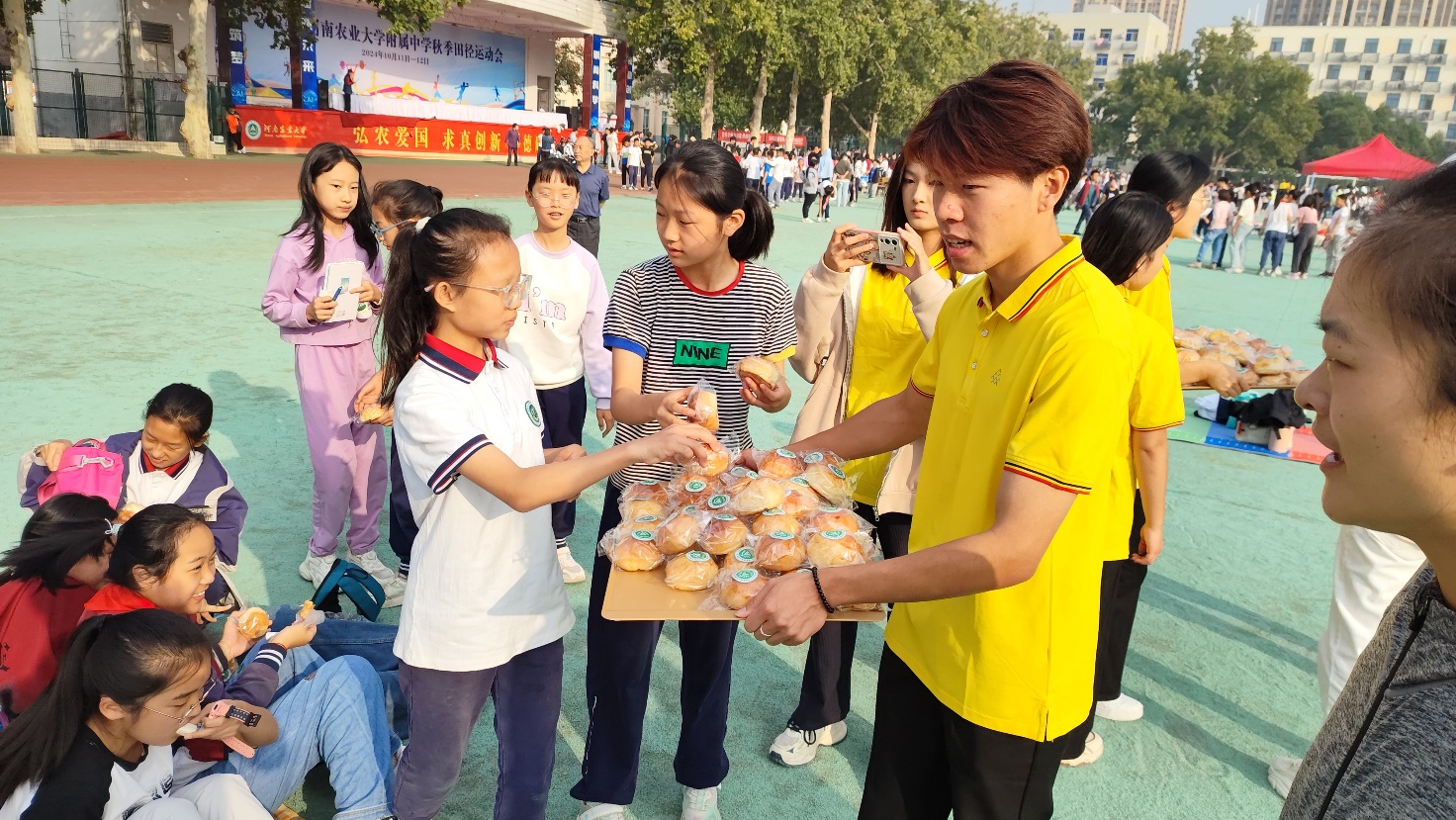 营养系教工党支部、食品营养协会长期致力于食品安全与营养知识普及,此次运动会中化身成为小小运动员们的坚实后盾。他们精心准备并亲手制作了富含营养的健康小面包,这些面包不仅为参赛的小选手们提供了及时的能量补给,更成为了传递健康饮食理念的重要载体。这一举动,不仅体现了对运动员的深切关怀与鼓励,更显示了协会致力于提升公众健康素养的崇高使命。