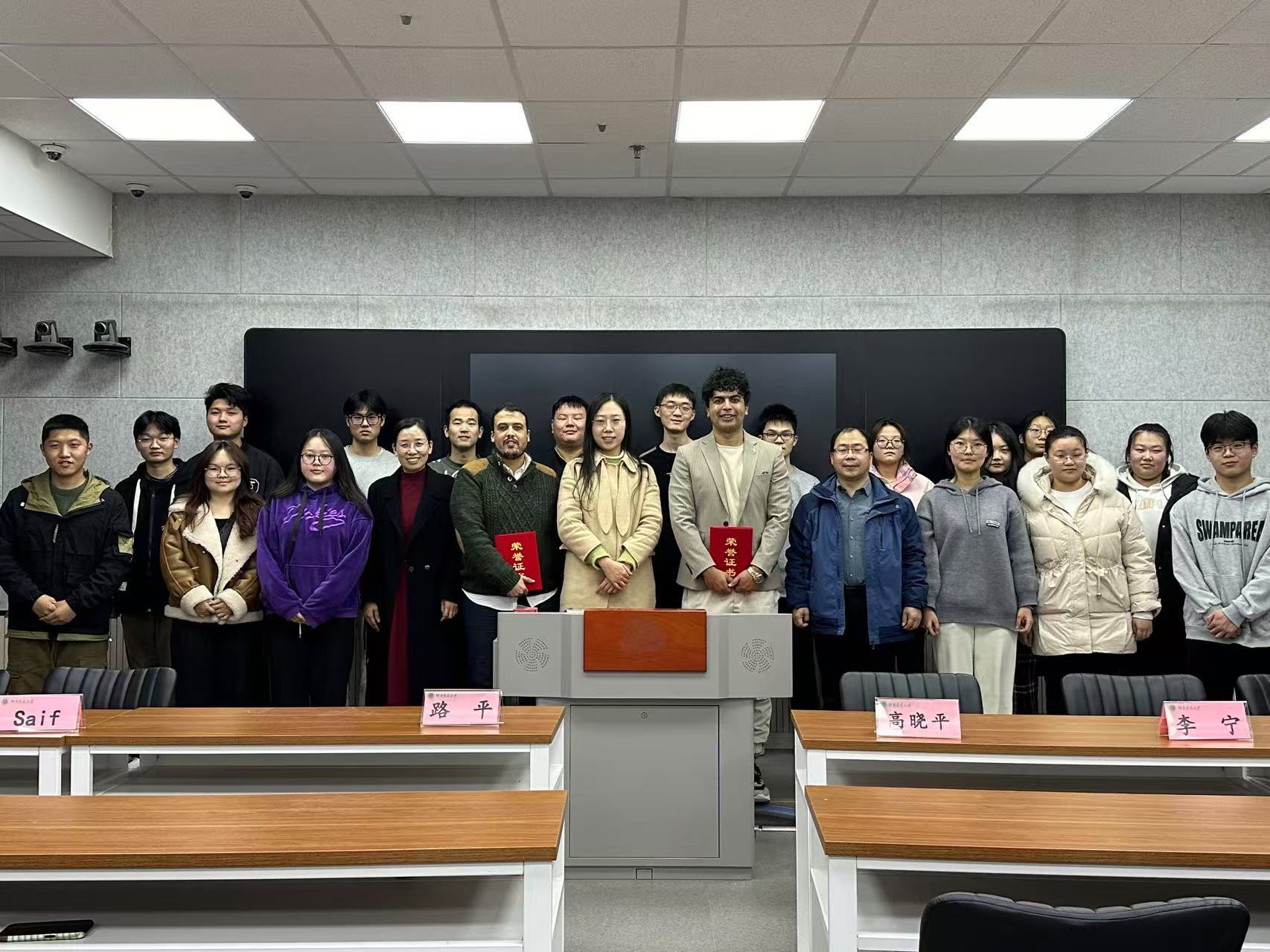 紧接着,特邀嘉宾Saif为同学们带来了一场英语学习经验分享。他的演讲风格风趣幽默,寓教于乐,为同学们提供了诸多实用的备考策略和学习建议。通过几个轻松有趣的小问题,Saif与同学们展开了互动,英语绕口令环节更是让大家沉浸在了不同语言魅力的海洋中。回答问题时,全英文的互动模式不仅考验了同学们的听力,也激发了他们用英语表达的热情。Saif鼓励大家在日常生活中积极运用英语,哪怕只是简单的问候和对话,也能在无形中提升语言的实际应用能力。分享结束后,同学们纷纷表示受益匪浅,对即将到来的英语四级考试充满了信心和期待。
