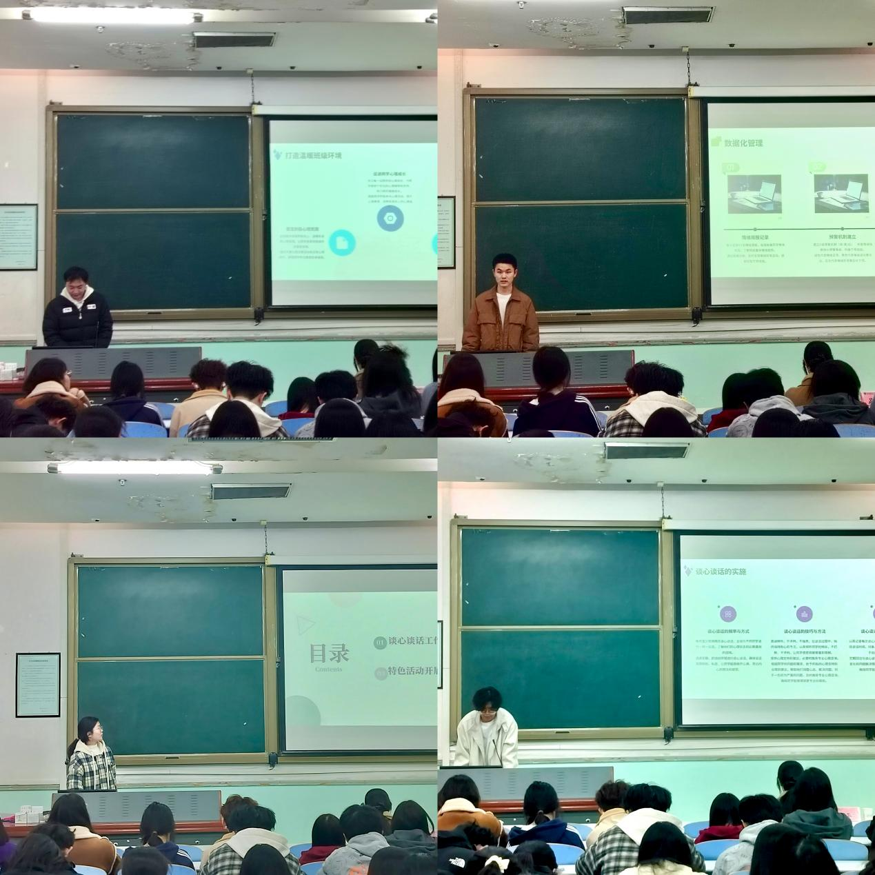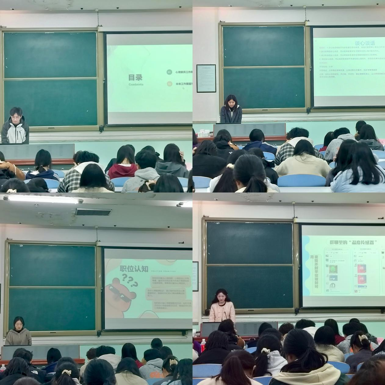 于文化路校区工程楼206室召开心理委员技能大赛暨十佳心理委员评选活动,院团委书记路平、辅导员丁明明、王小花出席此次活动,23、24级部分同学参加。