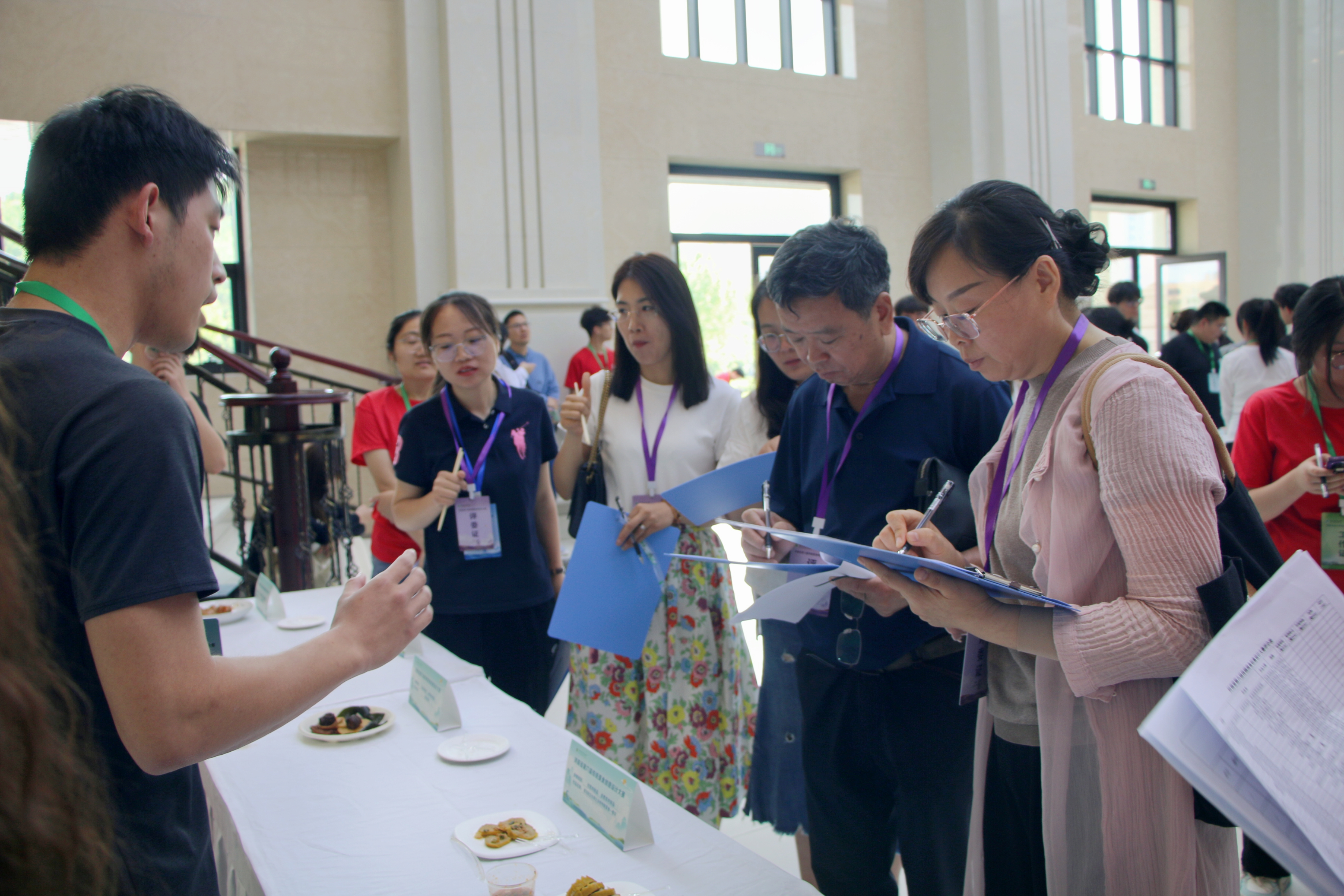 比赛期间,选手们详细介绍了菜品中的食材与烹饪技巧,评委们与参赛选手交流制作理念,对各个产品的创意特征、营养特点等方面进行评分。评委们对选手们勇于创新的精神给予肯定,鼓励选手们继续挖掘传统美食的潜力。在比赛中激发大学生对传统饮食文化的热爱与探索精神,推动传统美食文化在年轻一代中的传承与创新。