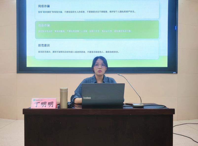 会中,丁明明系统总结本学期24级学生学习、活动等各方面表现,既肯定进步又指出不足。针对期末考试,通过案例讲解考试纪律,强化考风考纪教育,引导学生诚信应考。在社会实践环节,详细介绍“三下乡”“出彩中原”等社会实践项目的报名、开展与材料提交流程,鼓励学生积极参与,提升综合素养。在心理安全教育方面,重点讲解心理健康的重要性,普及压力调节方法,结合网络诈骗、人身安全等案例,提升学生风险防范意识,叮嘱离校做好宿舍安全检查。同时对宿舍调整工作做出具体安排,强调将全程协助解决学生困难。