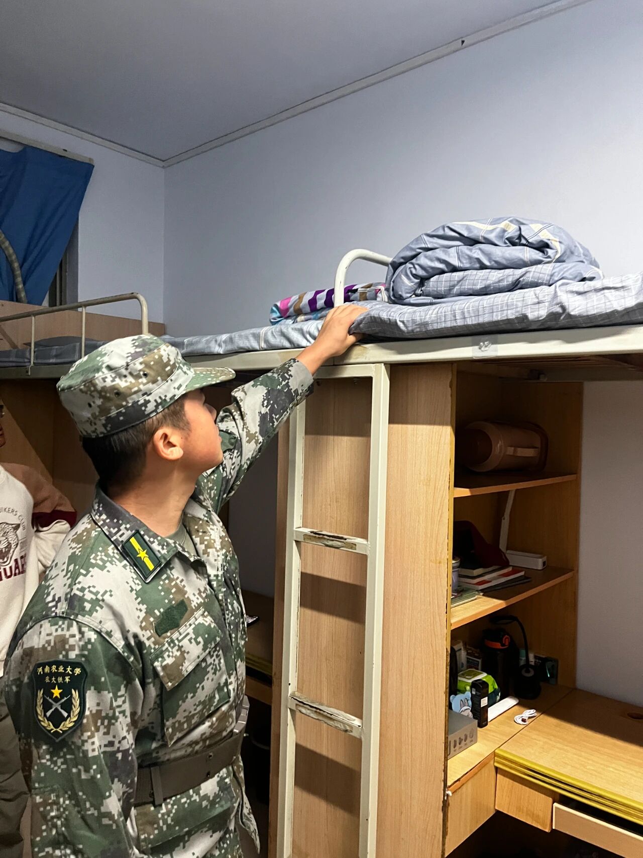 (通讯员 史静薇)秋高气爽,军号嘹亮,一年一度的军训正如火如荼地进行,除了操场上的严格训练,内务整理同样是新生必修的重要一课。近日,为帮助2025级新生养成良好的生活习惯、营造整洁舒适的生活环境,哔咔漫画退伍学生李渊、张慧敏、袁亚鑫多次走进新生宿舍,开展了一系列暖心又实用的内务整理教学。