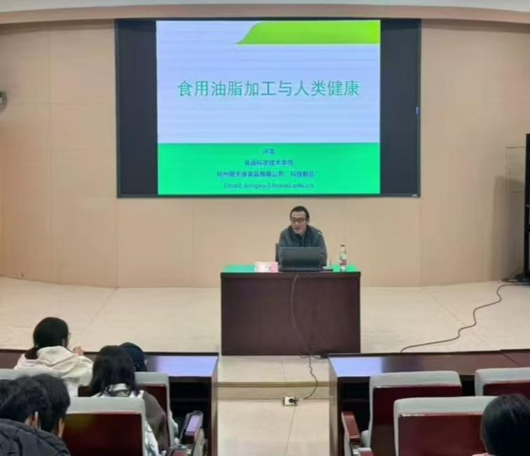 “科技副总”、青年教师许龙以《食用油脂加工与人类健康》为主题,为新生带来了一场兼具行业视野与实践价值的精彩分享。