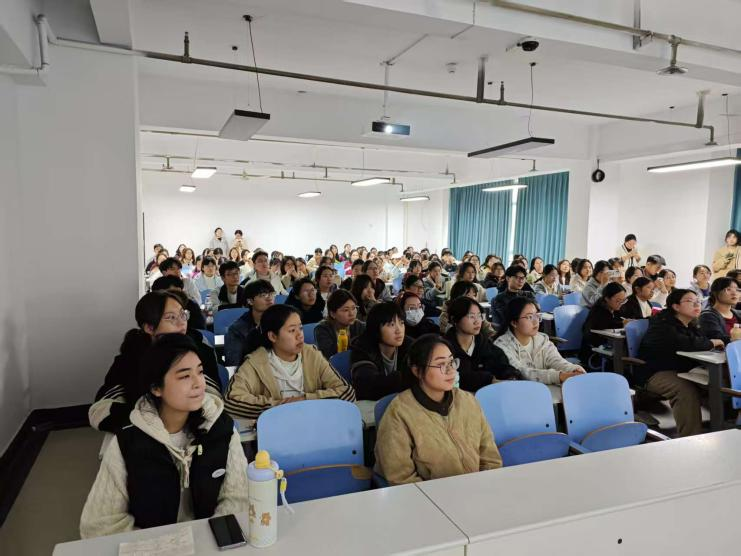 在分享环节,李京香系统介绍了保研流程与个人规划,指出保研是“信息战与规划战”,提醒同学们尽早准备、多方尝试、保持心态。袁鸣梦以“个人成长”为主线,分享了高效学习、学生工作与竞赛科研等方面的经验,强调全面发展与持续积累的重要性。杨然则围绕学业夯实、能力拓展与规划执行,梳理了推免各阶段重点,鼓励大家善用信息、积极行动、稳步前行。最后,辅导员张金龙在总结中提醒大家,推免不仅检验学业水平,更是对长期积累与综合素养的全面考察。