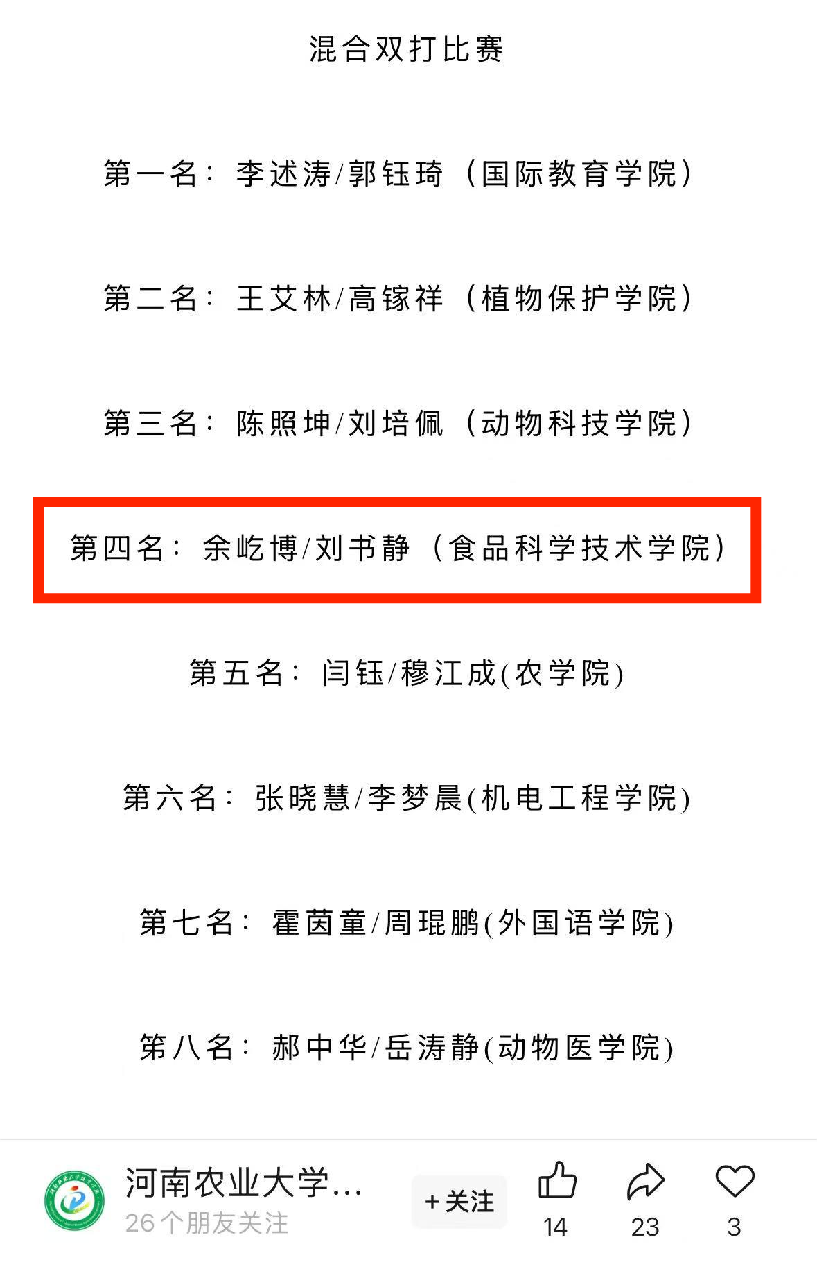 学子在赛场上挥拍逐羽、意气风发,历经多轮激烈角逐,最终凭借精湛的球技、默契的配合与顽强的斗志斩获佳绩。