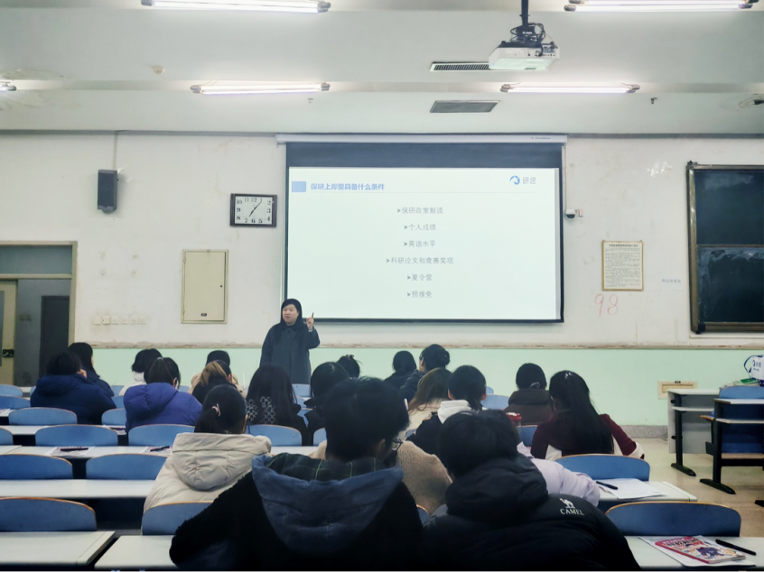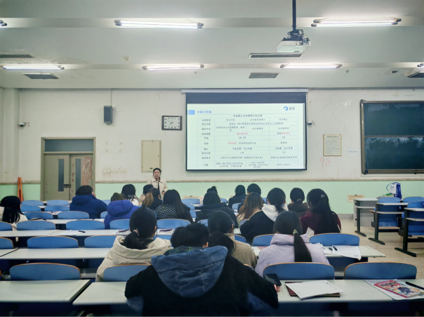 联合研途考研在工程楼101教室开展大学生涯规划指导讲座。讲座由许颖君、李佳琪主讲,吸引了各年级学子参与,为在场学子带来了一场内容详实、针对性极强的升学指导盛宴。