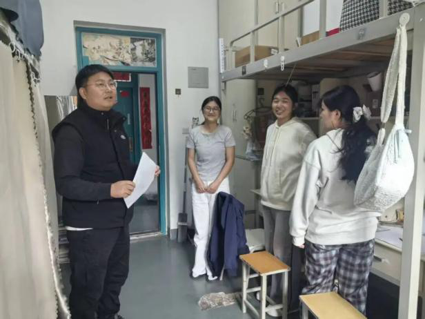 1.老师走访暖冬行:12月1日至2日,院团委书记路平、党委组织员陈翔等多位老师开展“全覆盖、无死角”排查,重点检查电路安全、违规电器使用、消防通道与设施规范,同步督导宿舍卫生与物品堆放,还与同学们亲切交谈,询问冬季生活需求、倾听困惑。