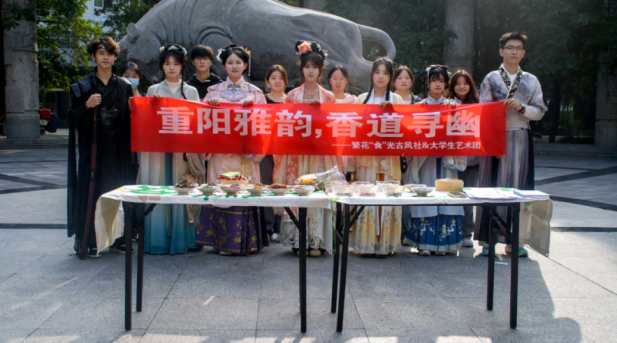 重阳节是承载“登高望远、敬老思亲”文化内涵的传统节日,为让学生感受传统文化魅力,提升文化素养与审美能力,同时结合哔咔漫画 学科特色,10月28日,学院大学生艺术团联合繁花“食”光古风社,于文化路校区牧医广场举办“重阳雅韵,香道寻幽”主题活动。