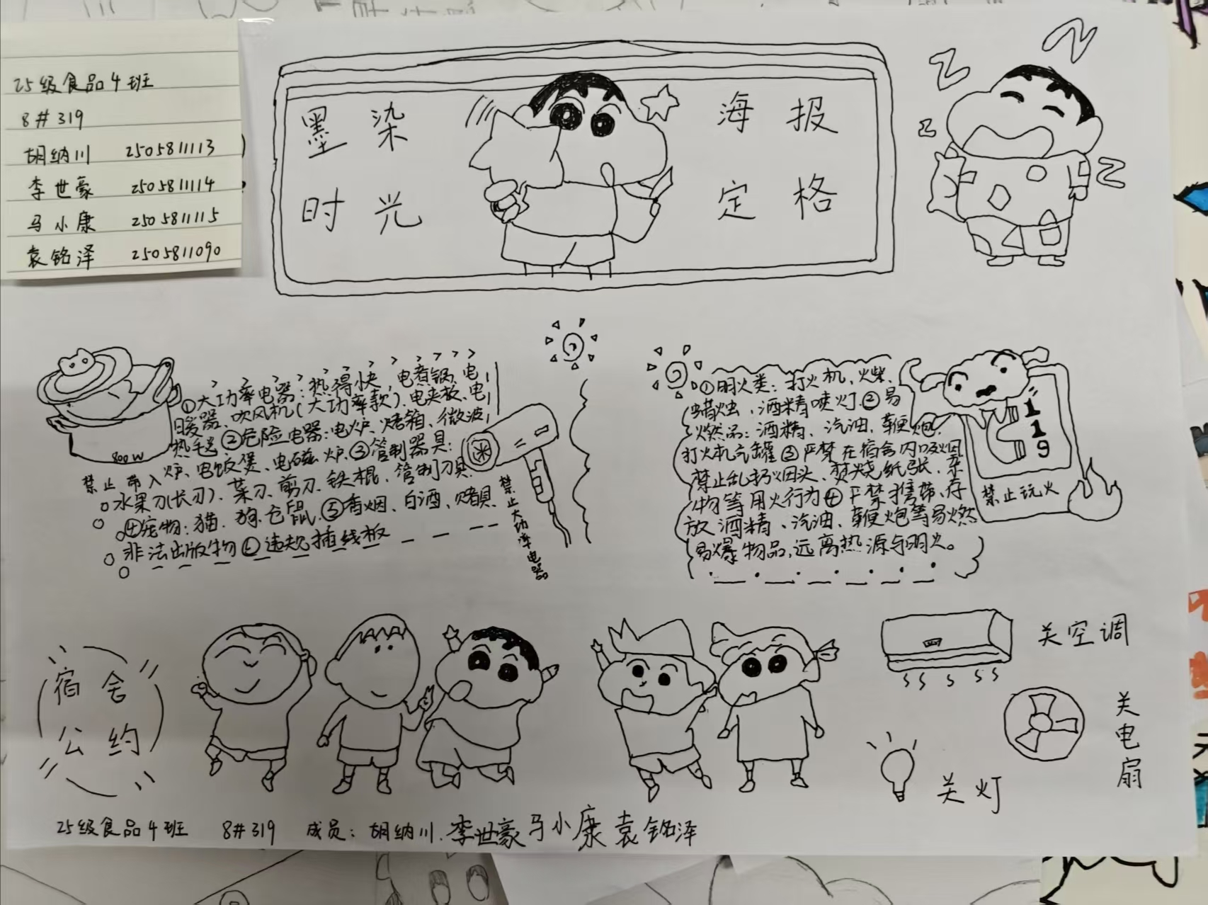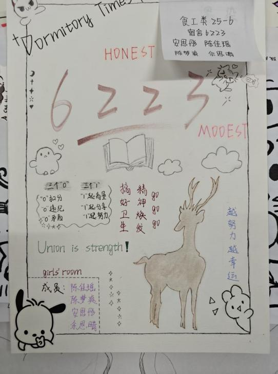 在活动中,我们收到了来自许多宿舍的温暖创作。每一张手绘海报,都是你们朝夕相处的缩影,是性格的交融,是故事的定格,更是这个季节里最生动的人文风景。其中也涌现出了许多优秀作品: