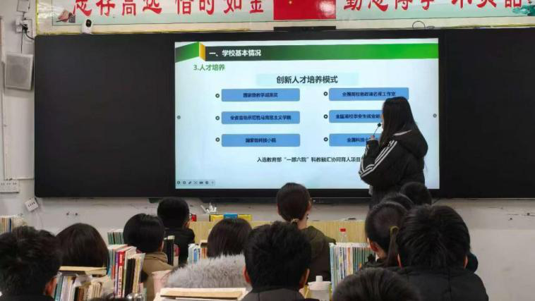 的办学历史、育人理念、校园文化、师资力量、校园环境及学习生活情况,用真实鲜活的校园故事和生动直观的图片素材,全面展现了农大浓郁的学习氛围、丰富的文体活动和鲜明的办学特色,让在场的同学有了更清晰、更立体的认识。