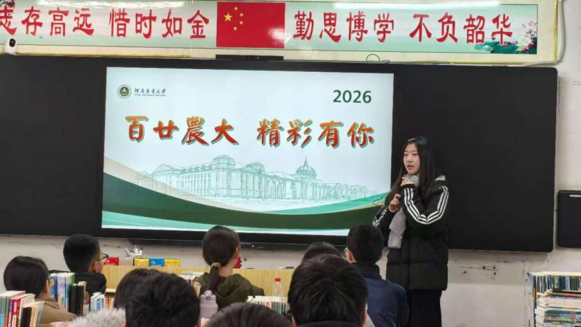 2025级学生张子馨返回高中母校新乡县第一中学,开展以“百廿农大,精彩有你”为主题的返校宣讲活动。