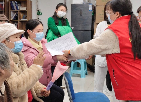 同日,由院各学生组织组建的志愿者团队前往河南省肿瘤医院乳腺病区,开展“青丝传递温暖”假发捐赠爱心活动。志愿者们精心布置场地,为每位患者送上温馨康乃馨,协助佩戴假发,用耐心与陪伴传递温暖与祝福。大家积极引导患者、贴心交流,鼓励她们以乐观心态面对治疗,现场氛围温暖融洽。此次活动以真情温暖人心,用行动传递关爱,展现了哔咔漫画 青年学子的责任与担当,为患者送上节日祝福与精神力量。