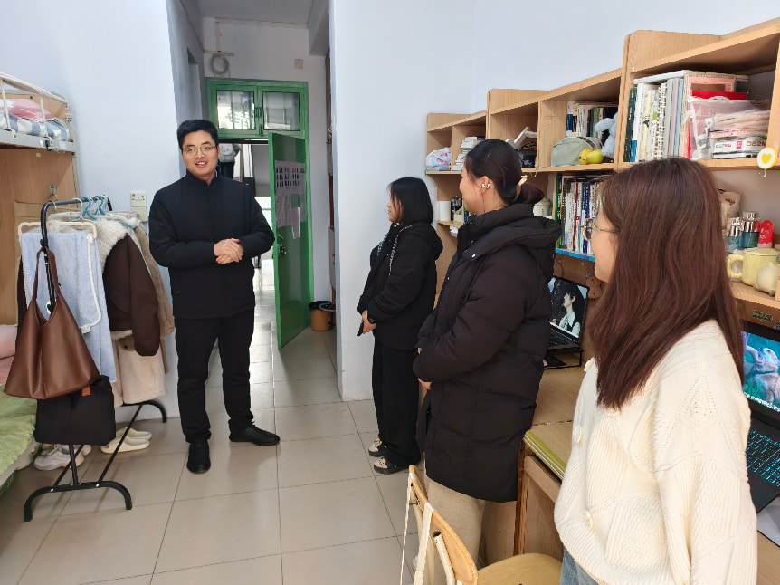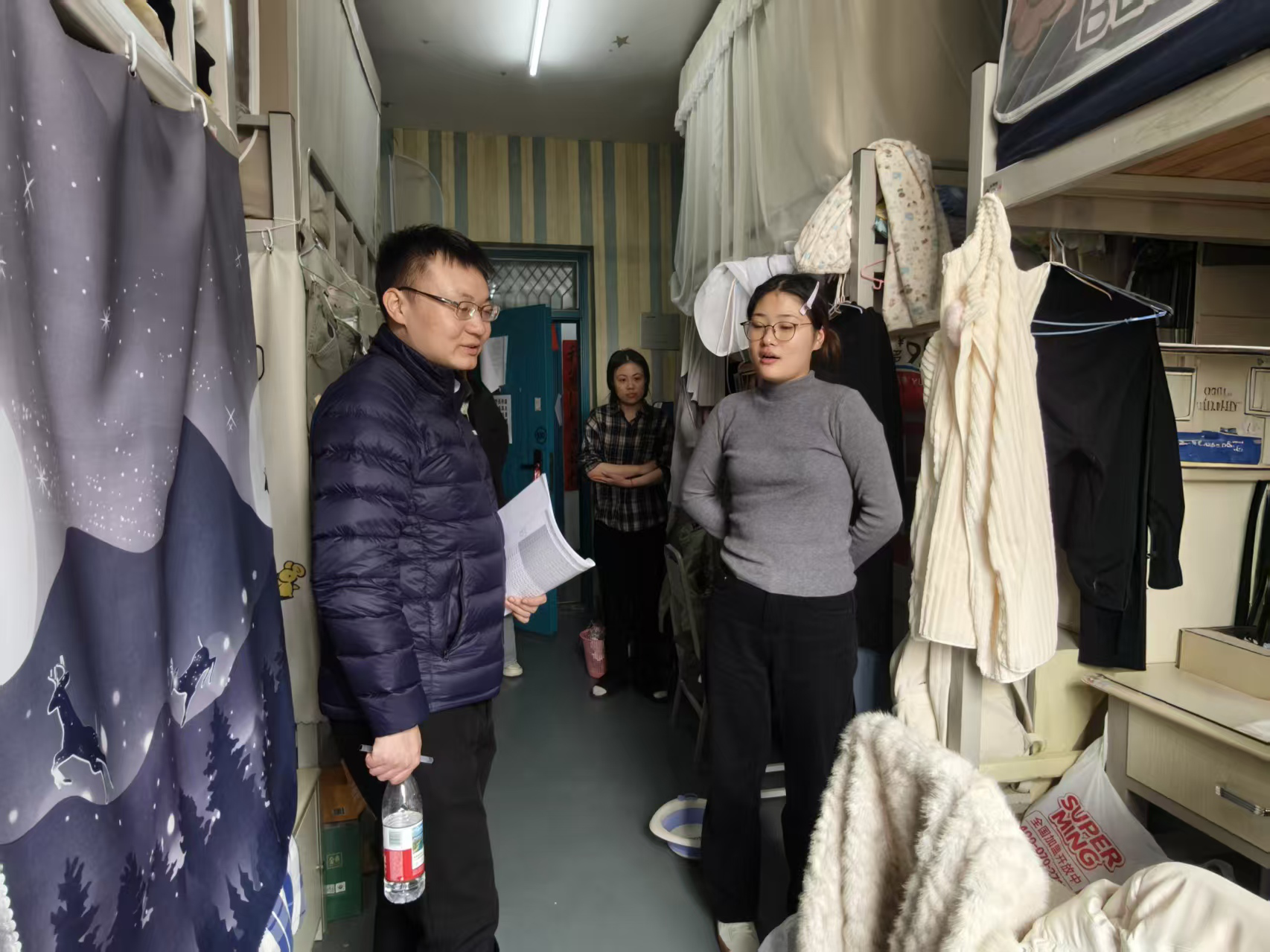 (通讯员 王艺博 张炫)为加强宿舍安全管理,营造安全舒适的住宿环境,3月10日至13日,院团委书记张金龙、院党委组织员陈翔、院团委副书记丁明明、研究生辅导员银峰及各班主任老师深入学生宿舍,开展春季安全排查,与同学们面对面交流,送去关心与叮嘱。