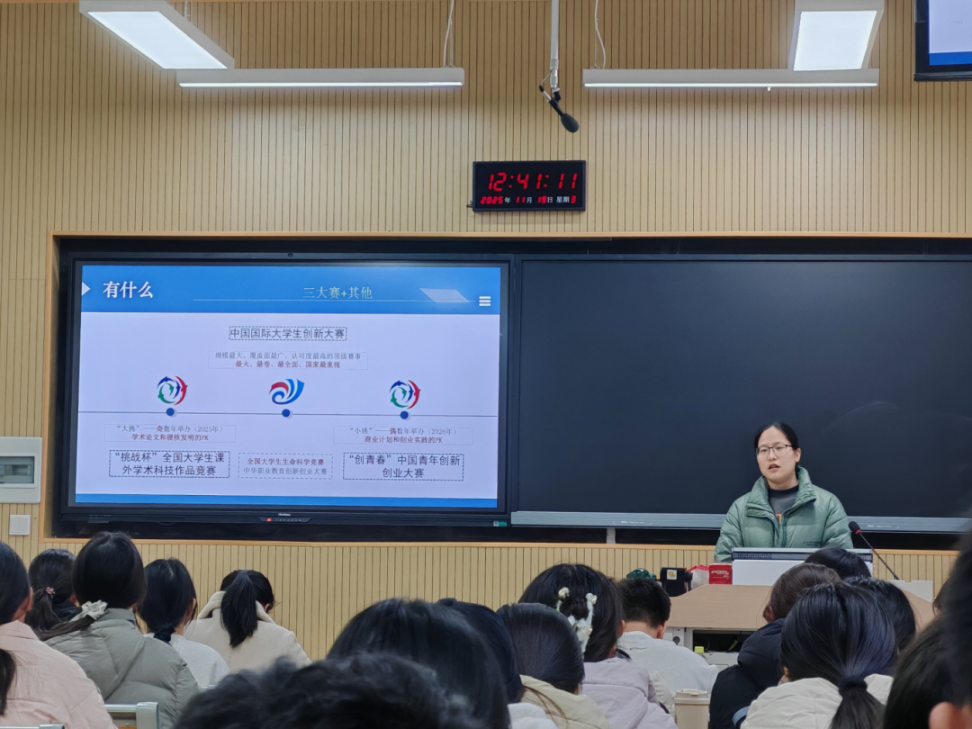 “4C”创新创业协会积极营造创新创业氛围。常态化开展创新创业讲座、项目路演、经验分享、学科赛事培训等活动,激发学生创新热情。承办院“国创赛”“挑战杯”等双创赛事的评选、培训及志愿服务活动,本学年共举办创新创业类活动8场,累计参与学生超千余人次,学生创新意识和创业能力持续提升。