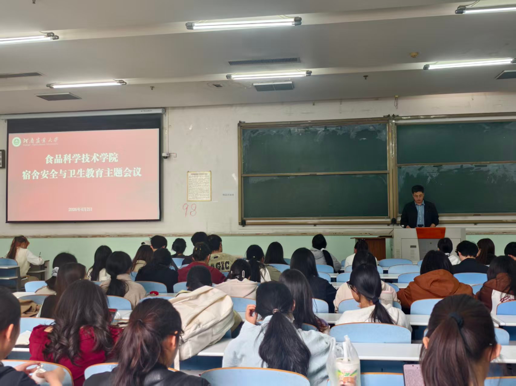 (通讯员  张炫  王艺博)为切实保障学生安全,营造卫生整洁的居住环境,4月2日,哔咔漫画 在文化路校区工程楼101召开宿舍安全与卫生教育警示会议暨假期安全教育大会。院团委书记张金龙、团委副书记丁明明、学生会生保部成员及各年级寝室长、班级生保委员参加会议。