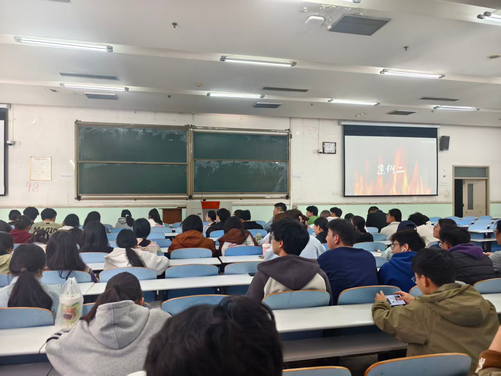 与会人员共同观看宿舍安全警示教育片,短片聚焦用电与消防安全,警示同学们防范各类安全事故。