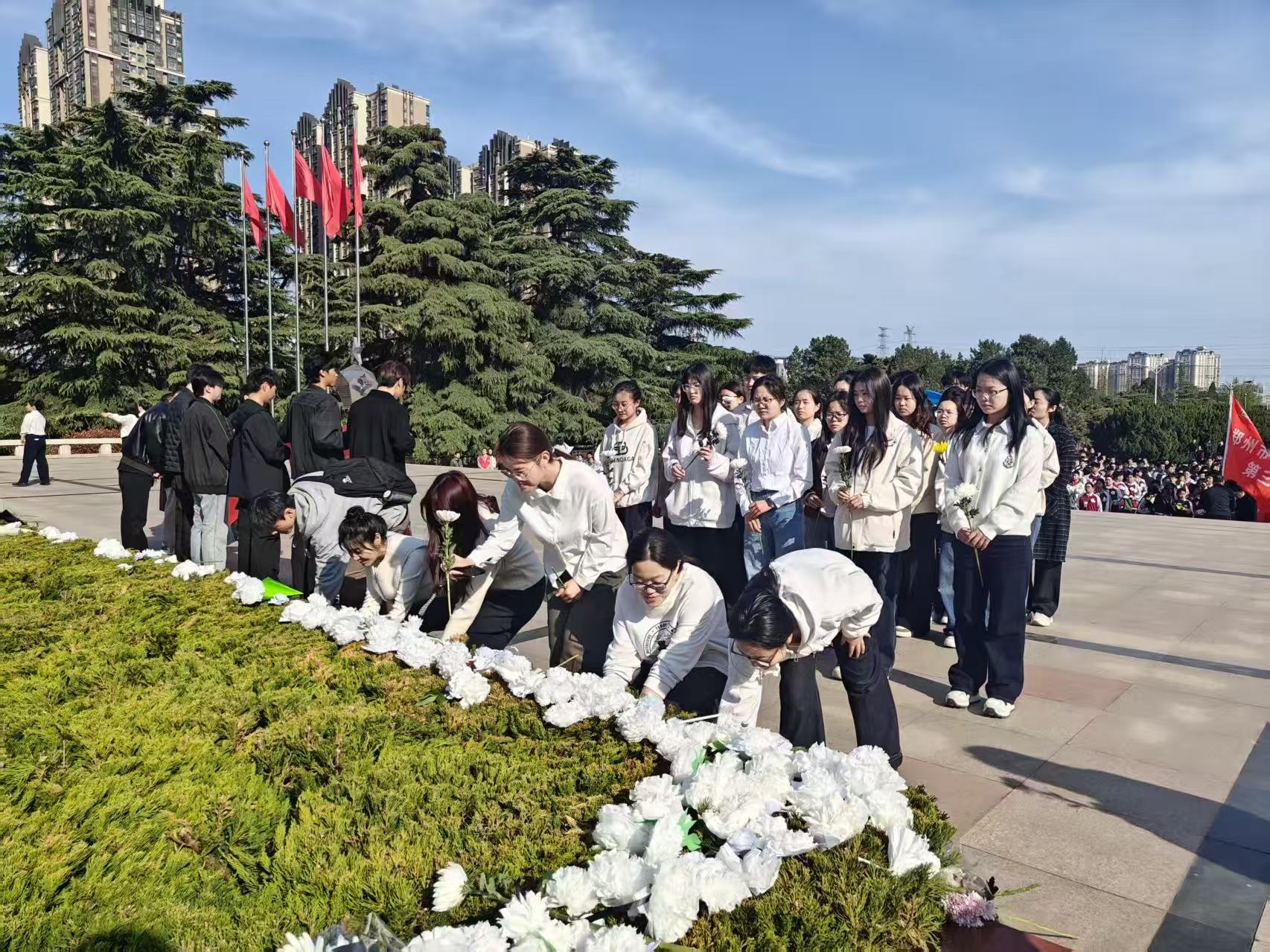 在庄严肃穆的烈士纪念碑前,全体人员整齐列队,默哀致敬,并通过擦拭纪念碑、敬献鲜花等方式表达对革命先烈的崇高敬意。随后,全体人员走进郑州烈士陵园纪念馆,参观珍贵历史照片与革命文物,聆听英雄事迹,接受红色精神洗礼。